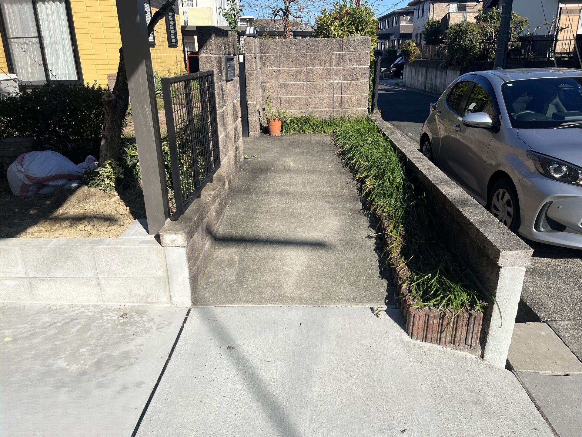 実際の施工では、既存のスロープと新たに拡張した車庫部分の土間勾配を調整し、車と人がスムーズに出入りできるよう工夫いたしました。特に、新旧スロープのつながり部分に違和感が出ないよう、慎重に高さや勾配を整えています。