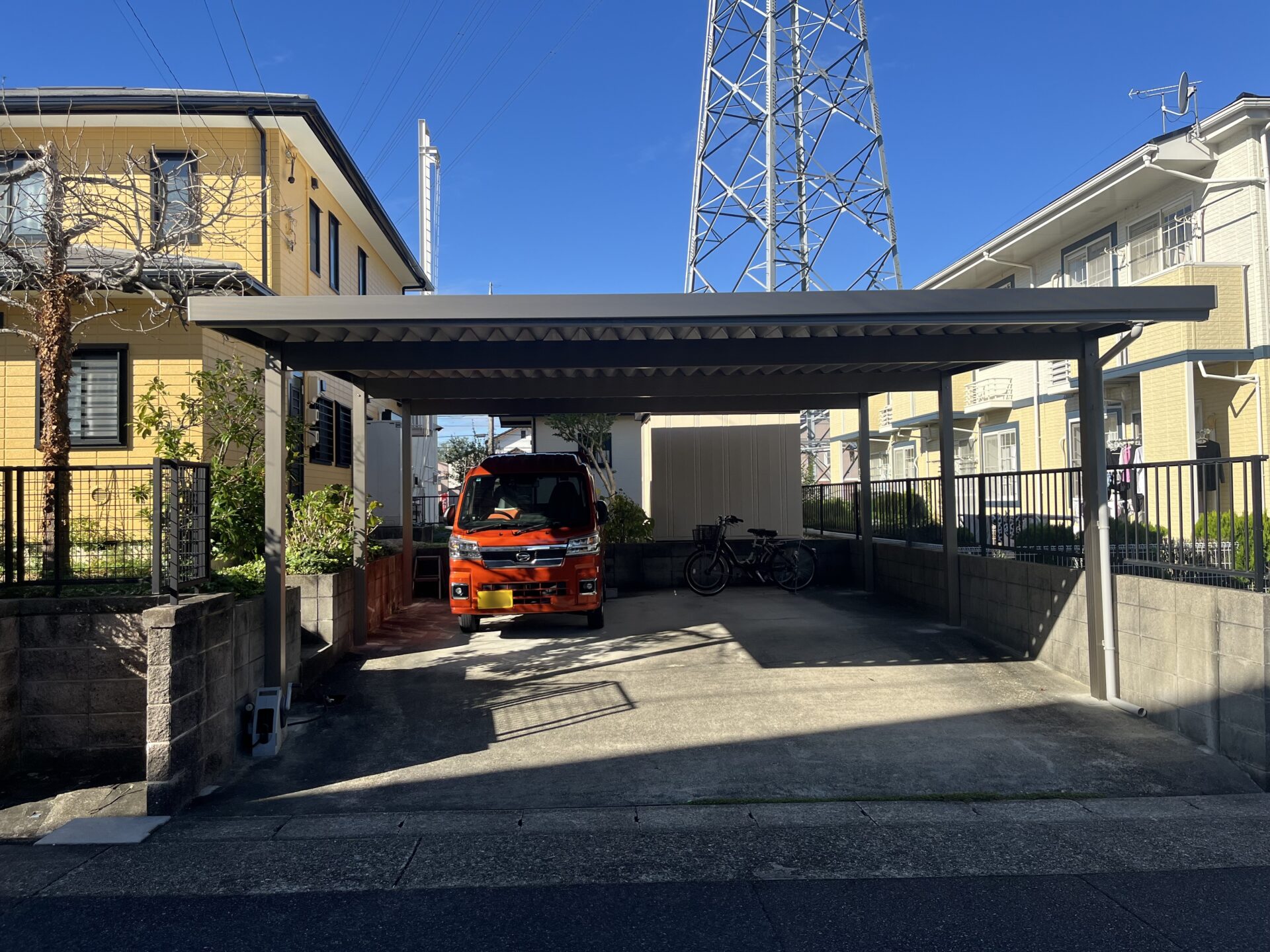 2箇所目の車庫拡張工事では、既存の2台用カーポートを撤去し、W60-D80の大型セッパンガレージを新設しました。これにより、より多様な車両や大型の車も安全に駐車できるようになり、利便性が向上いたしました。