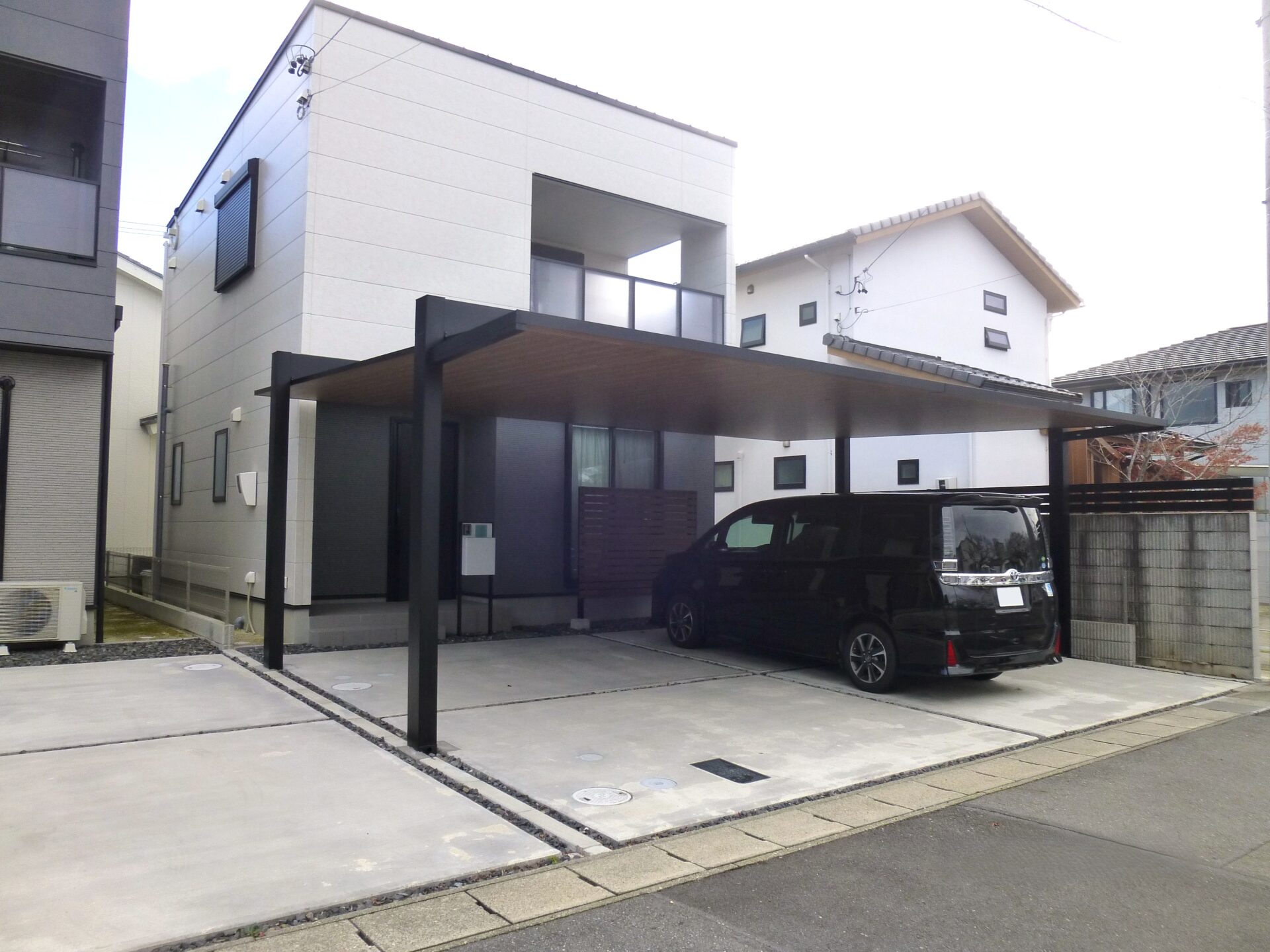 愛知県小牧市にて、新築戸建て住宅のカーポートとフェンスの単品工事をご依頼いただきました。今回は外構全体ではなく、必要な部分に絞って計画することで、建物の魅力をより引き立てるプランとしています。