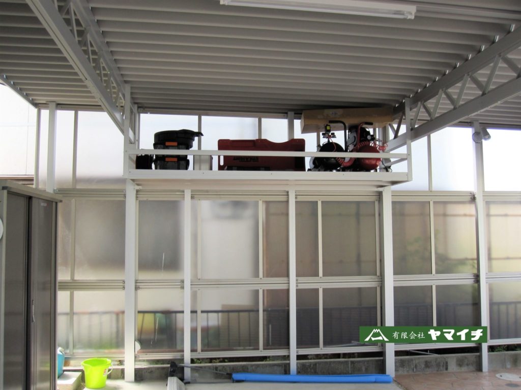 アルミセッパンガレージ内に収納部分を作りました!
