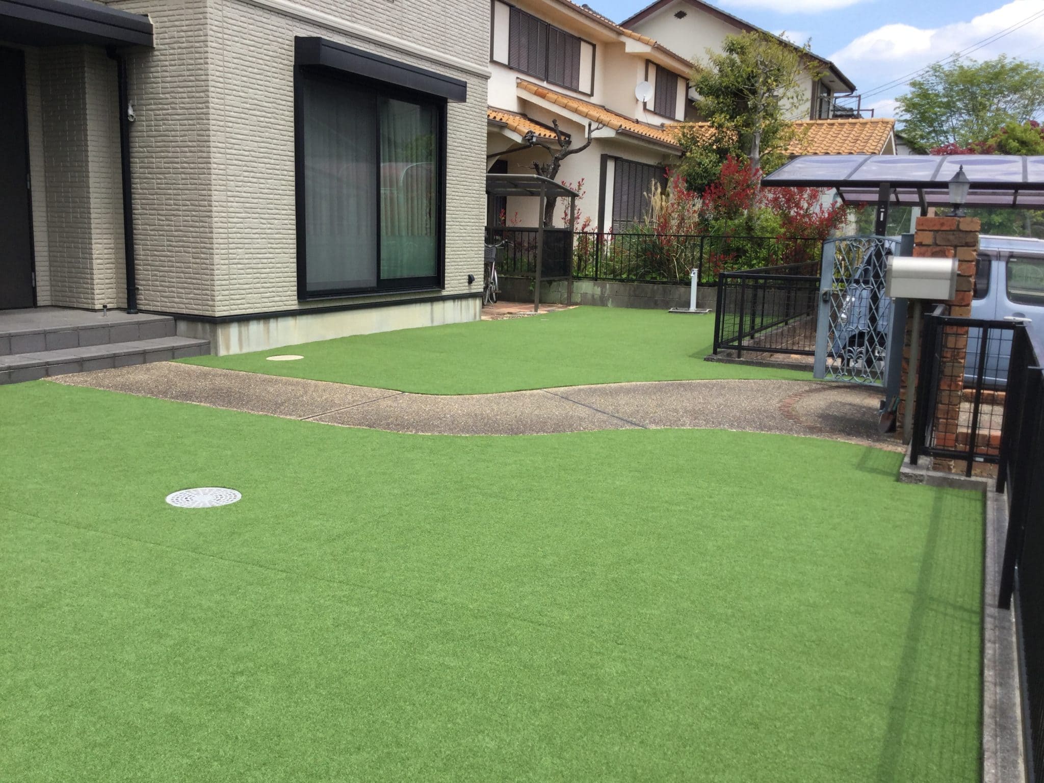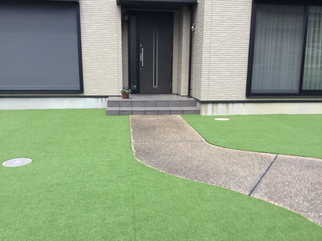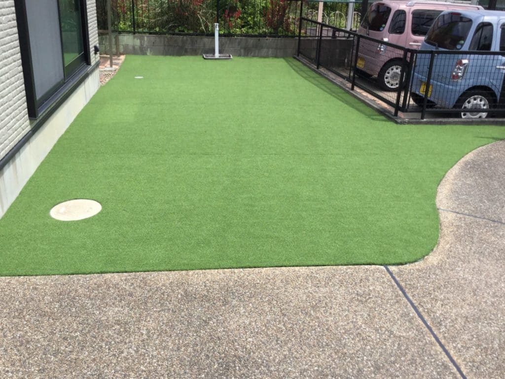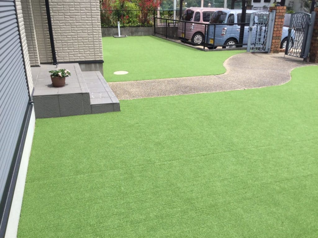 防草シートを敷き、リアル人工芝で仕上げました!