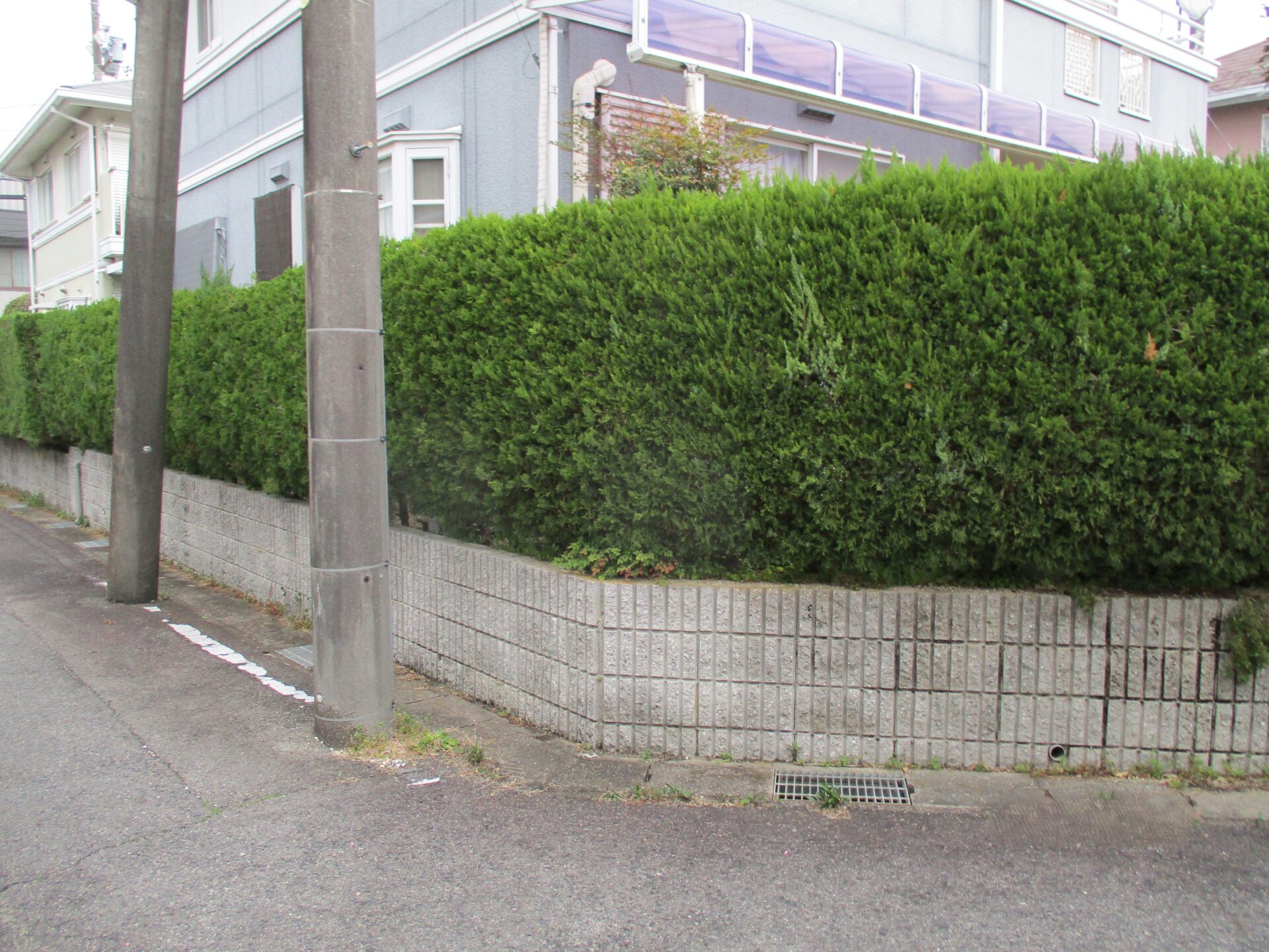 3方向を道路に囲まれた立地で、約130本の生垣・庭木を撤去する大掛かりな工事となりました。施工時には、ご近隣への騒音・粉塵などの影響を最小限に抑えながら慎重に作業を進めました。